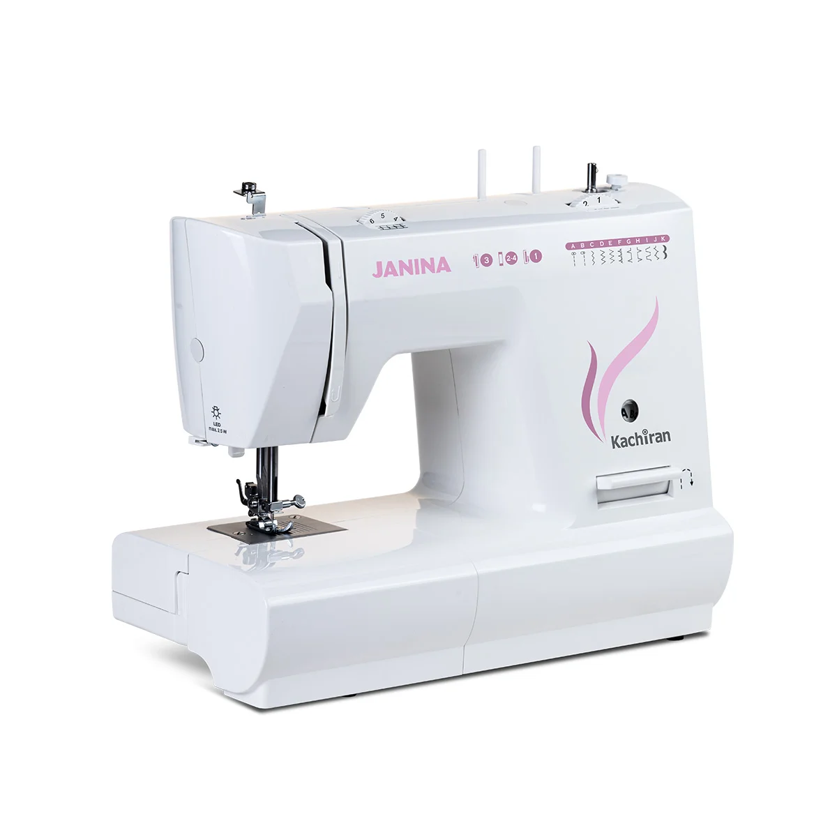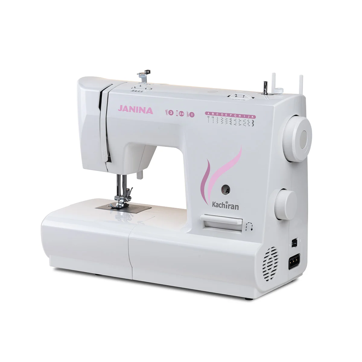 The Janina 4010 sewing machine is lightweight and very quiet in addition to being strong. Different types of zigzag sewing machine sewing patterns are marked on the body with letters. Each model is selected with the sewing model selection wheel located on the right side of the sewing machine (below the handwheel) and the sewing pattern is shown on the visual display. Kachiran Janina is one of the new products of Kachiran company, available in the Iranian and global markets in three series: 4010 (with 10 types of stitching), 4020 (with 23 types of stitching) and 4030 (with 32 types of stitching), in both normal and plus models.