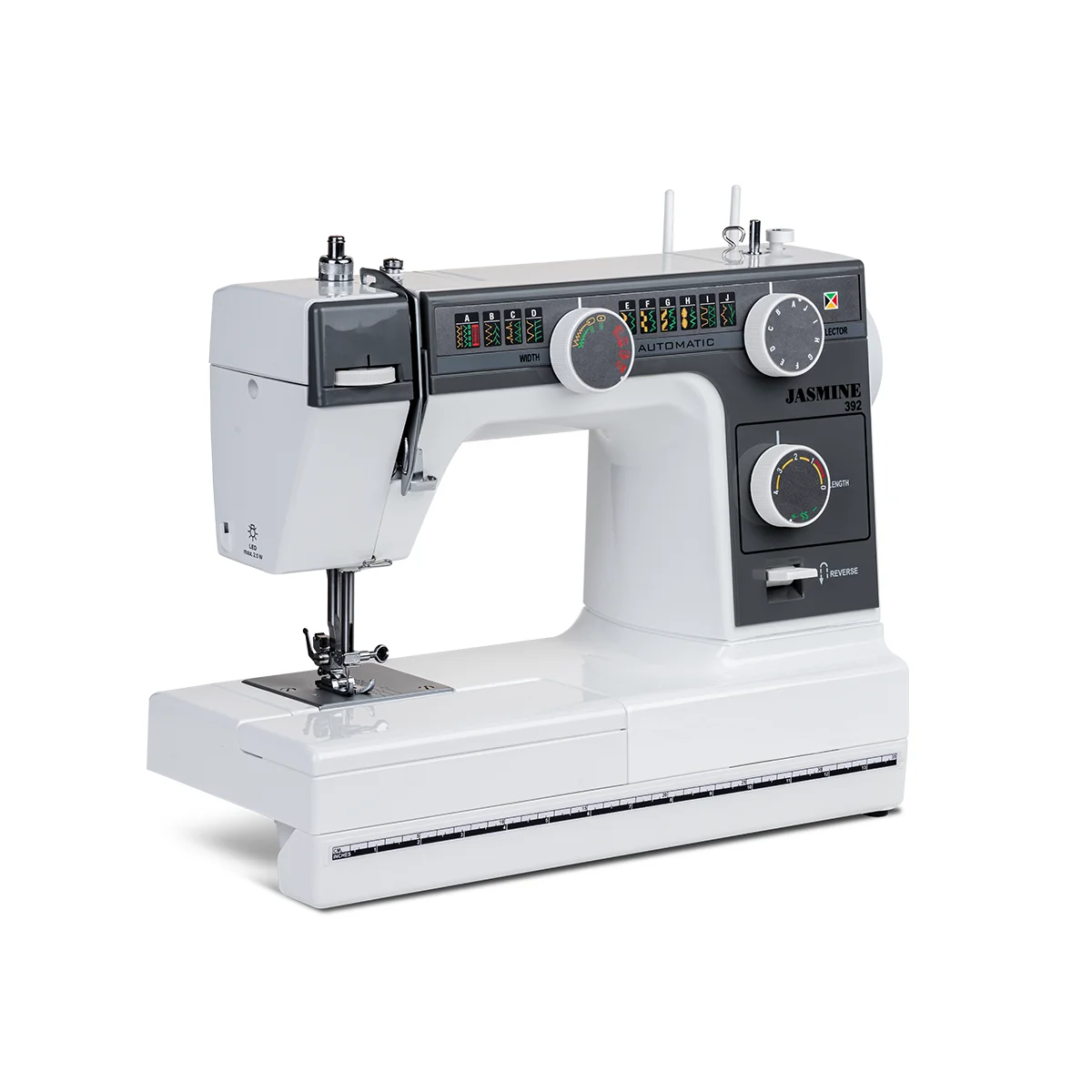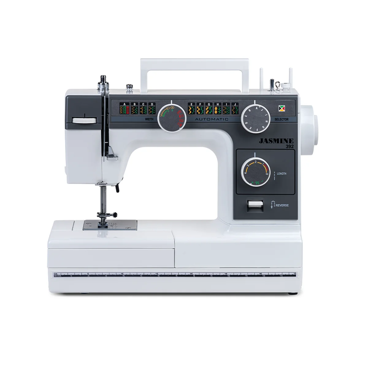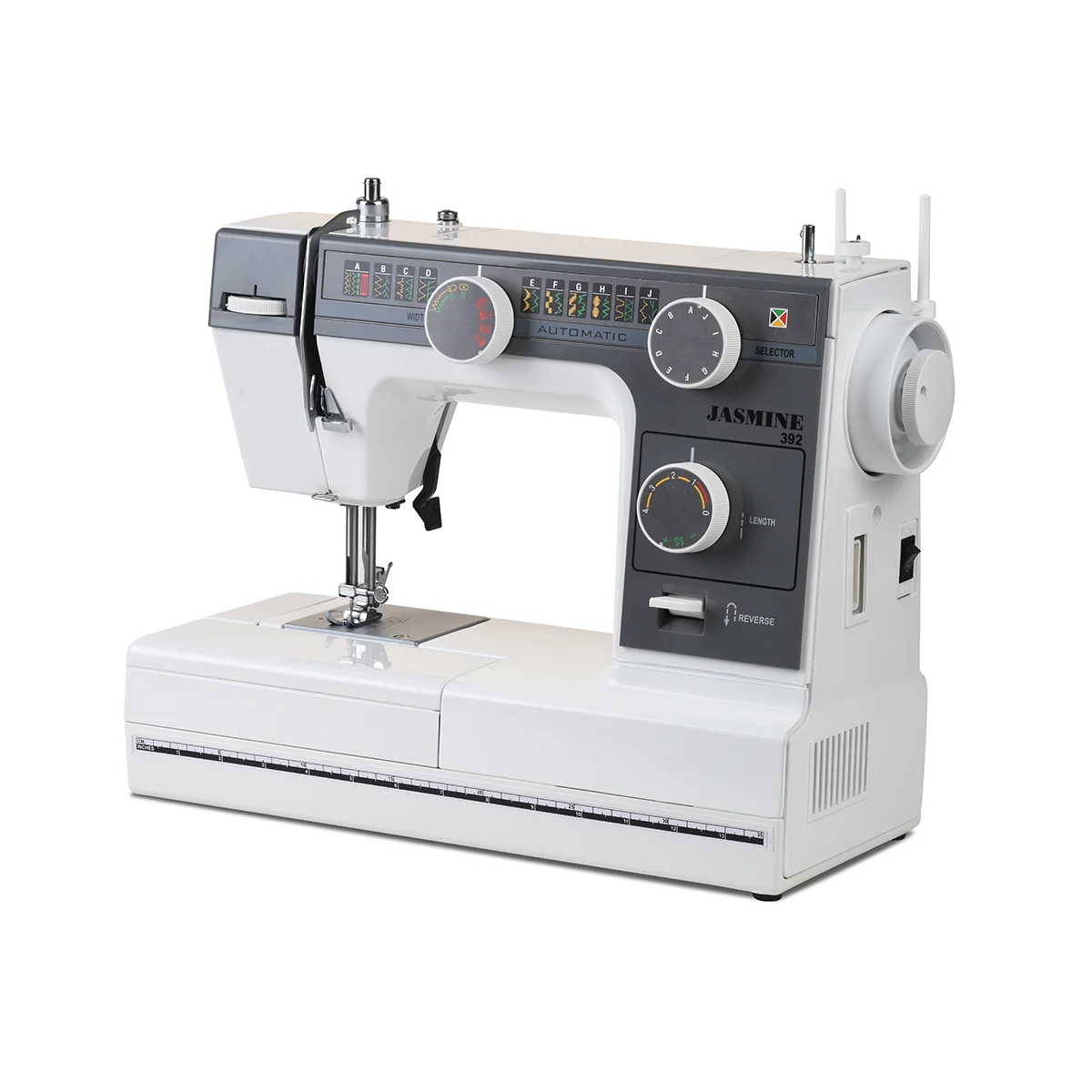 The Model “392” sewing machine is one of the professional export products and part of the Jasmine family of sewing machines from “Kachiran” company. This beautiful sewing machine by supporting different sewing patterns, provides the possibility for the user to perform various types of sewing using this machine. The machine has a lightweight and strong aluminum body. It can do sewing widths from 0 to 5 mm and sewing lengths from 0 to 4 mm. The 392 model offers a total of 22 sewing designs with the combinations. The pedal of this model is electronic, making the machine easier to use. This model also supports stretch stitching, which is an important application and feature for stretch fabrics. The Kachiran export sewing machine Model 392 features a built-in handle for easy carrying. This high-quality sewing machine can sew with two needles and includes a simple and convenient bobbin winding system. The ability to sew buttonholes, zippers, cotton rope and blind hem stitches is also available in this. For more comfortable sewing, the model includes a flat surface and an extension plate. It should be noted that this machine has safety approval from the Institute of Standards and RoHs, with all electrical components in it installed under the European CB Scheme and CE of Industrial Research of Iran.