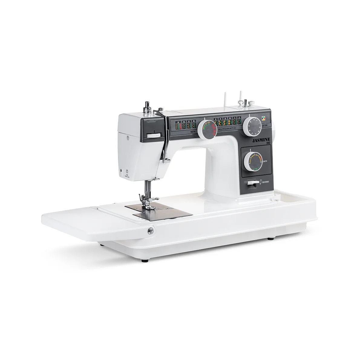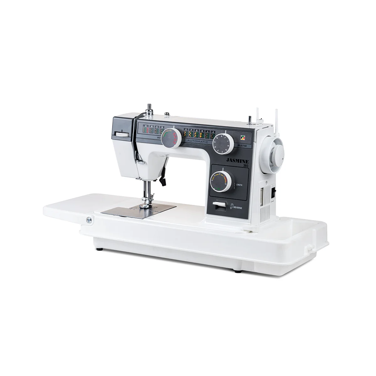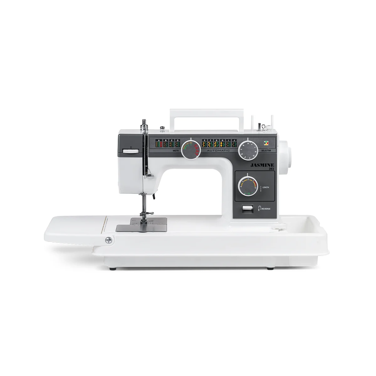 The Model “393” sewing machine is one of the professional export products and part of the Jasmine family of sewing machines from “Kachiran” company. This beautiful sewing machine by supporting different sewing patterns, provides the possibility for the user to perform various types of sewing using this machine. The machine has a lightweight and strong aluminum body. It can do sewing widths from 0 to 5 mm and sewing lengths from 0 to 4 mm. The 393 model offers a total of 22 sewing designs with the combinations. The pedal of this model is electronic, making the machine easier to use. This model also supports stretch stitching, which is an important application and feature for stretch fabrics. The Kachiran export sewing machine Model 393 features a built-in handle for easy carrying. This high-quality sewing machine can sew with two needles and includes a simple and convenient bobbin winding system. The ability to sew buttonholes, zippers, cotton rope and blind hem stitches is also available in this. For more comfortable sewing, the model includes a flat surface and an extension plate. It should be noted that this machine has safety approval from the Institute of Standards and RoHs, with all electrical components in it installed under the European CB Scheme and CE of Industrial Research of Iran.